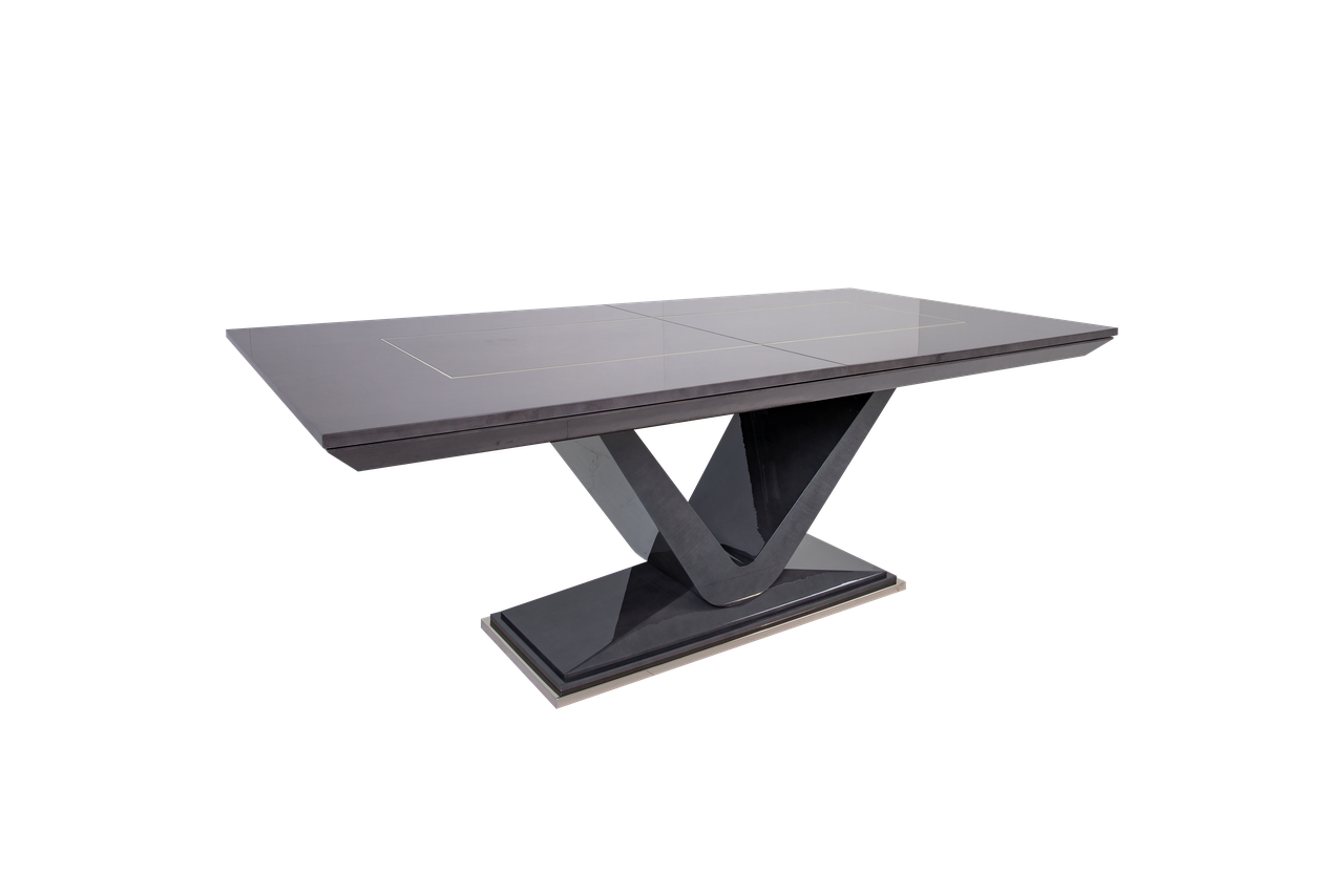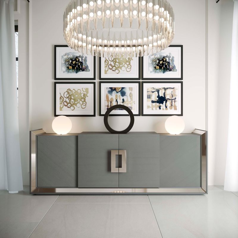 High Gloss Timeless Walnut Wood Finished with Brushed Brass Accents.