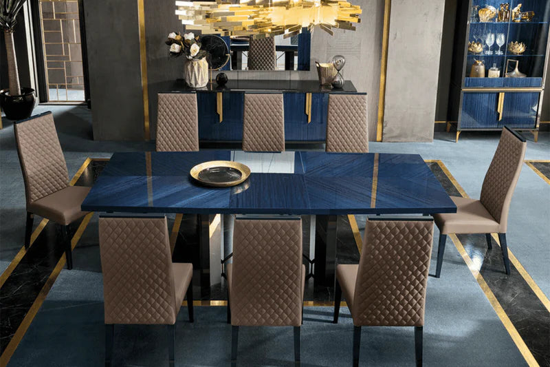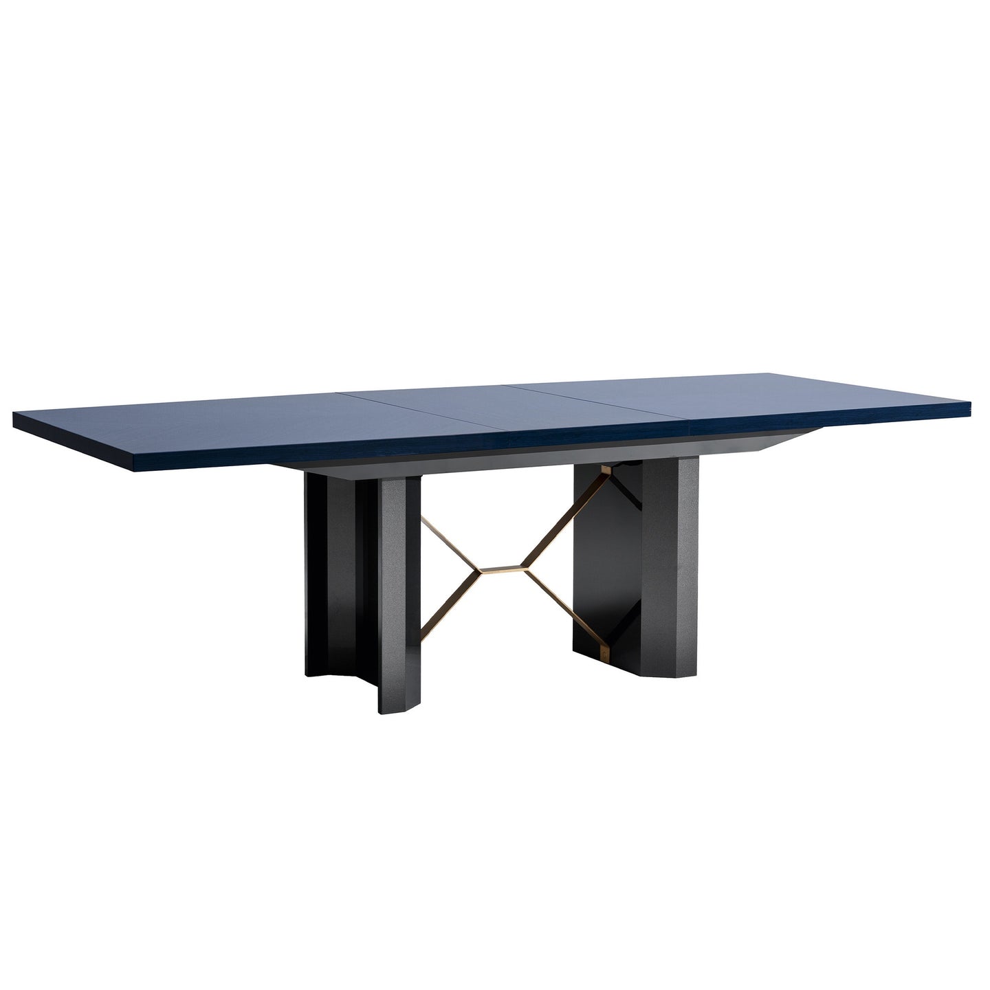 Cobalt eucalyptus finish with a high gloss lacquer. Accented with brushed metal.