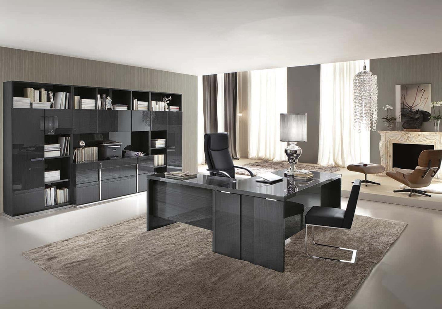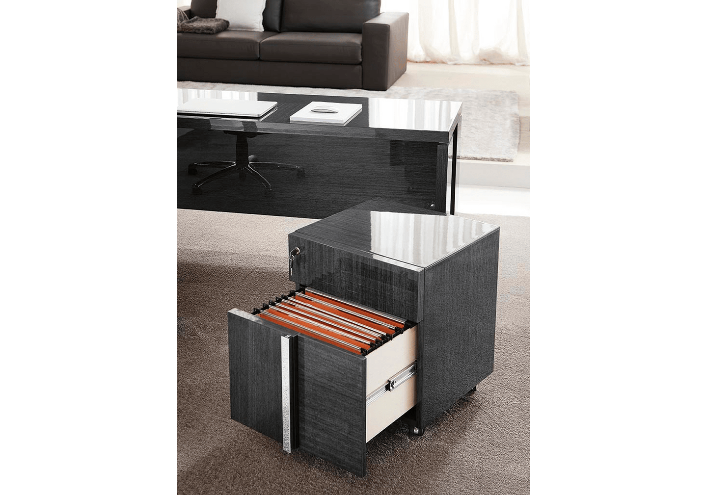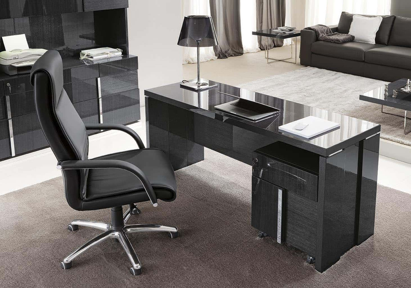 Exotic Grey kot finished with a high gloss lacquer and chrome accents