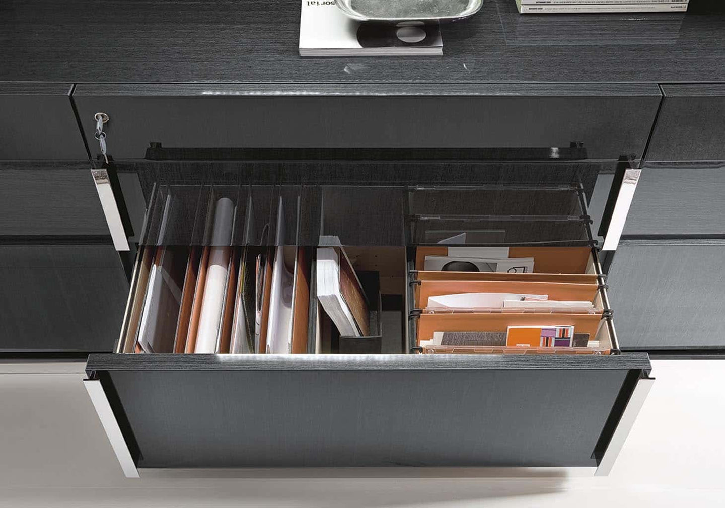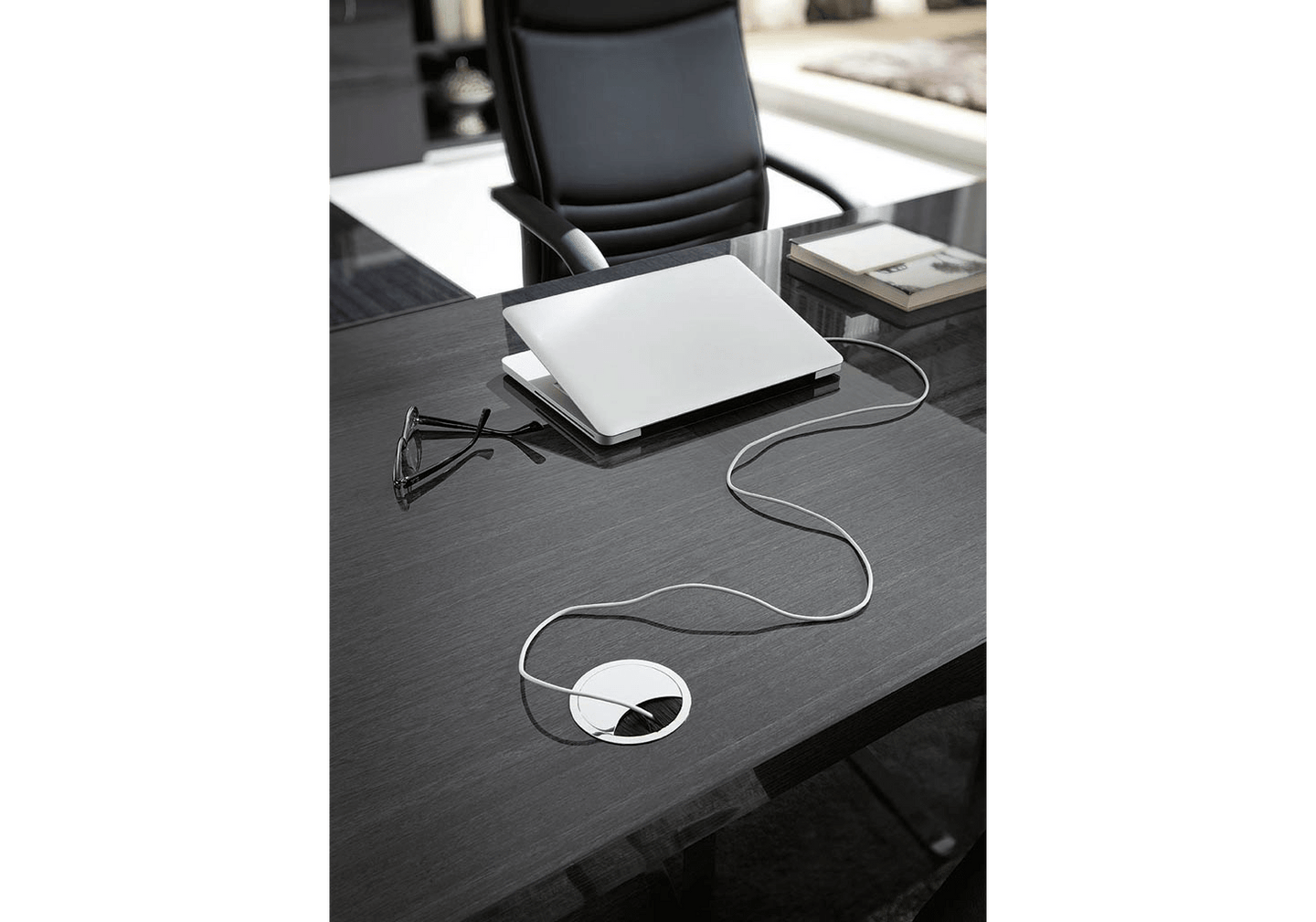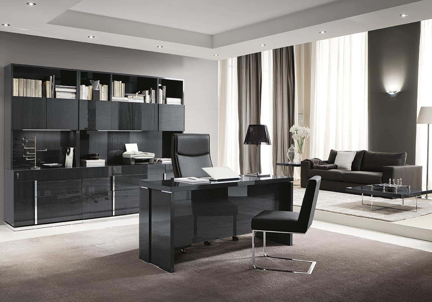 Exotic Grey kot finished with a high gloss lacquer and chrome accents