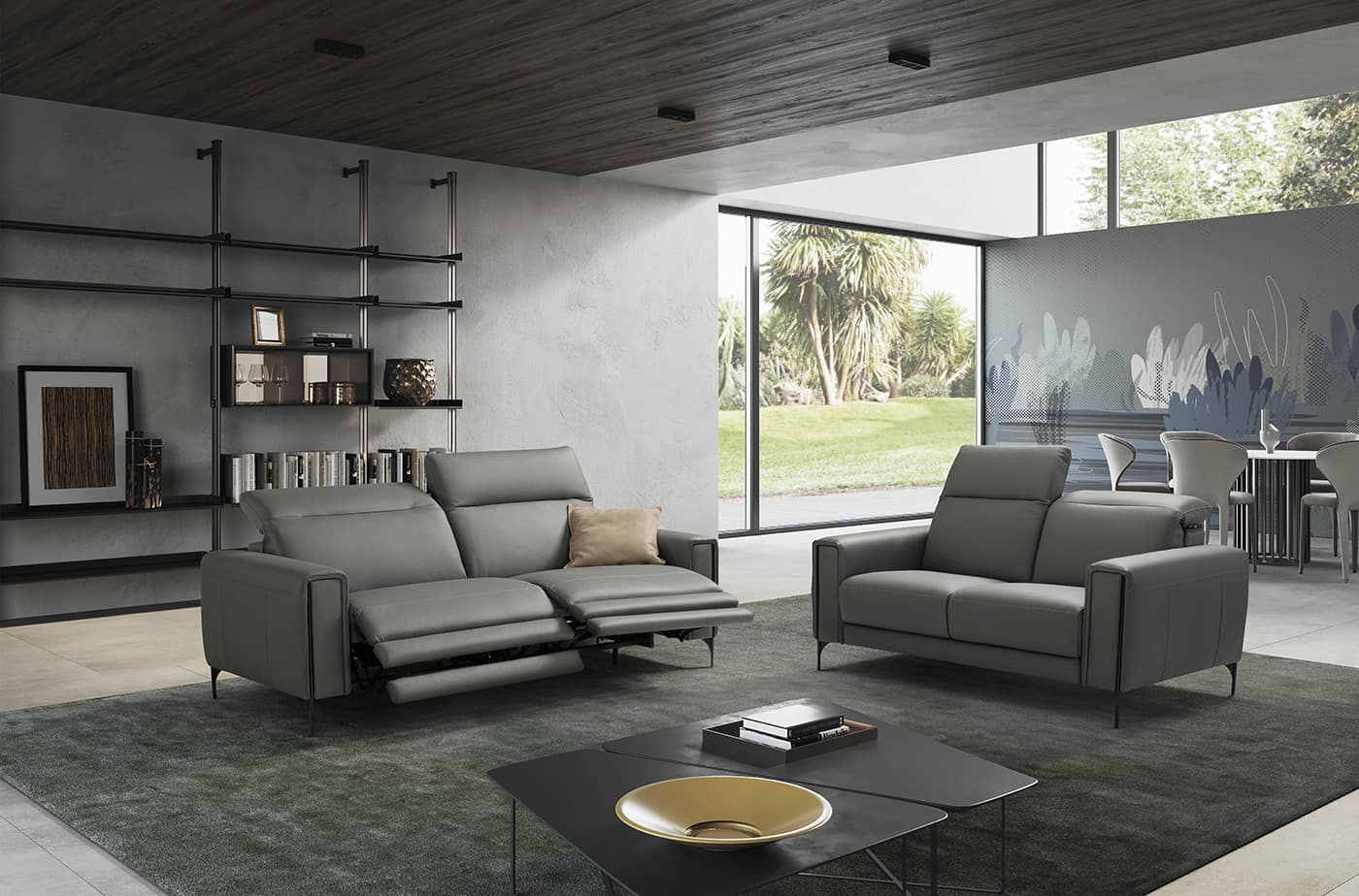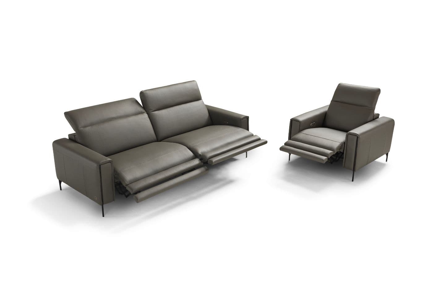 NOTE: In the relax version the model is made with a combined mechanism with backrest and footrest movement, available only in the electric version with control positioned on the inside of the armrest. The central seats with electric relaxation mechanism are equipped with touch controls positioned on the side of the seat itself. The chaise longue can be equipped with threemotor relaxation mechanisms that adjust the position of the headboard and modify the depth and height of the seat. In the xed versions the headboards are tted with nonmotorised, manually adjustable ratchets. The relaxation element is always detached from the xed version and is attached with a bayonet system.